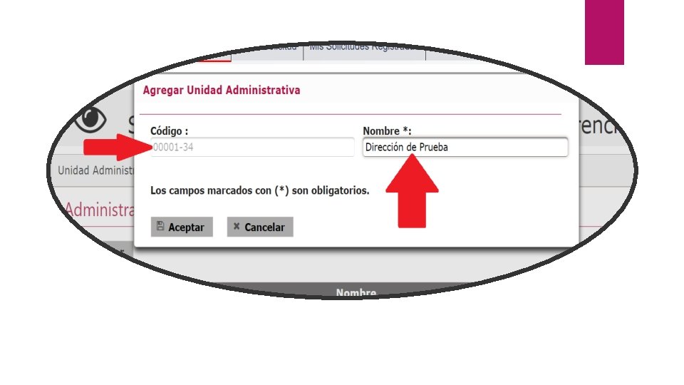 Consideraciones Al crear una Unidad Administrativa, el código es un valor consecutivo y establecido por el sistema, por lo que este no podrá ser modificado. En caso de ser eliminada la Unidad Administrativa, el código relacionado a esta quedará inhabilitado. Si es necesario modificar la información de un Usuario con perfil de Administrador de Unidad Administrativa, es recomendable eliminarlo para que en un segundo paso se vuelva a crear con la información correcta.