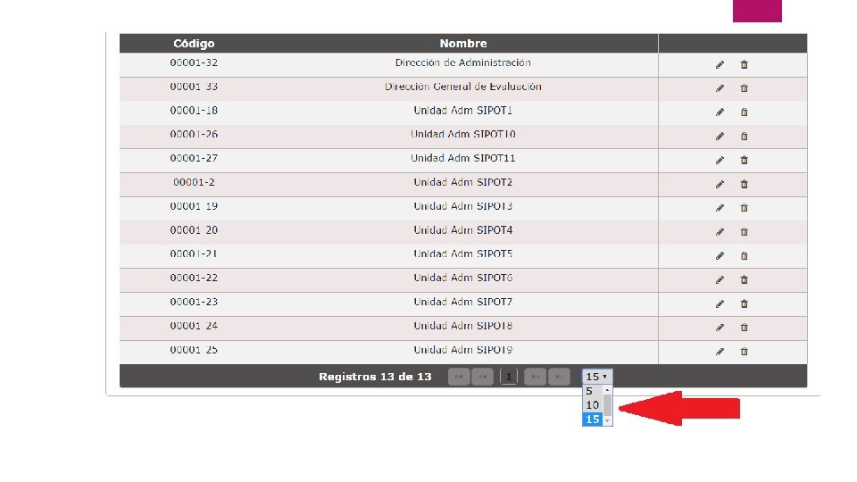Funciones comunes de la aplicación: ¿Qué ven en común los dos perfiles? Editar Barra de paginación Eliminar Primer página Página anterior Página siguiente Última página Diversos Botones