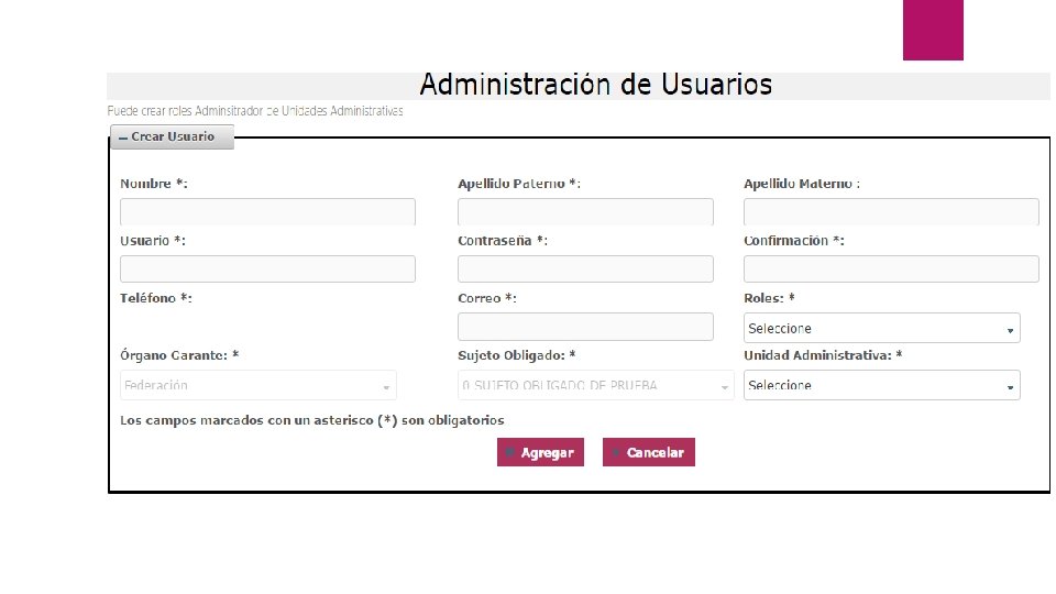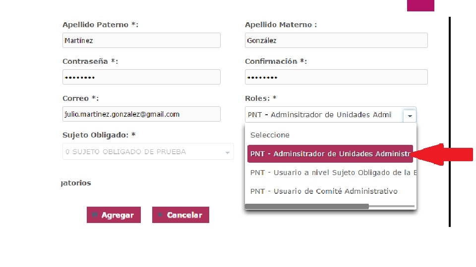 3. 2 Alta de Usuarios con Rol de Administrador de Unidad Administrativa