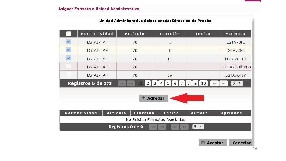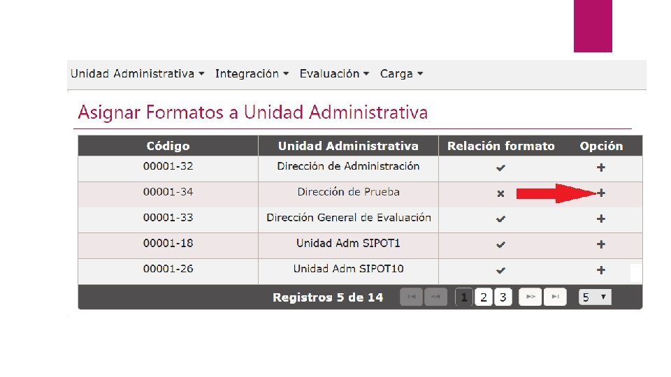 Asignación de 3. 3 formatos a Unidades Administrativas