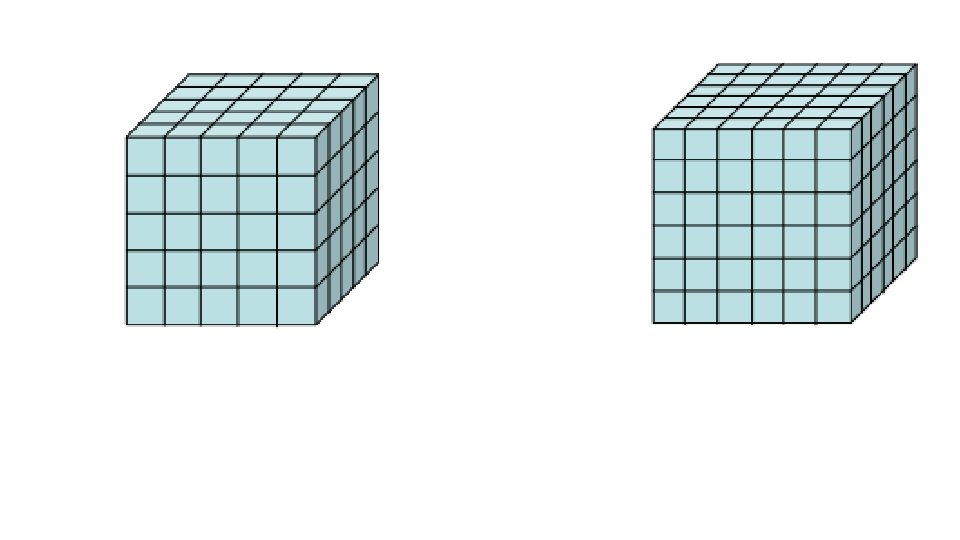 Cuatro cubos de madera de dimensiones 3 x 3 x 3, 4 x 4 x 4, 5 x 5 x 5 y 6 x 6 x 6 fueron pintados de verde y cortados en cubos de 1 x 1 x 1, como se muestra a continuación:
