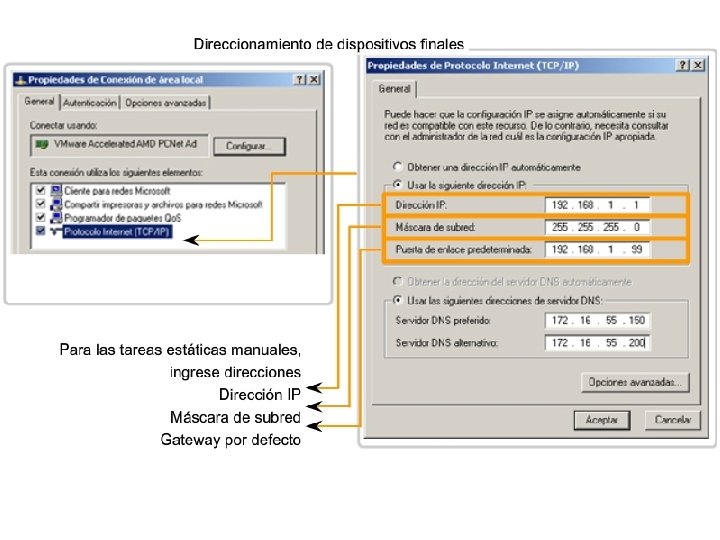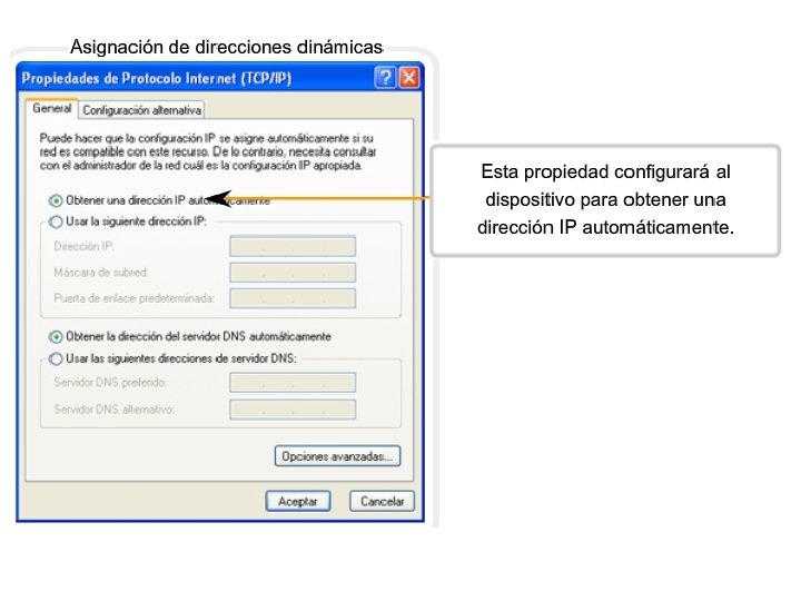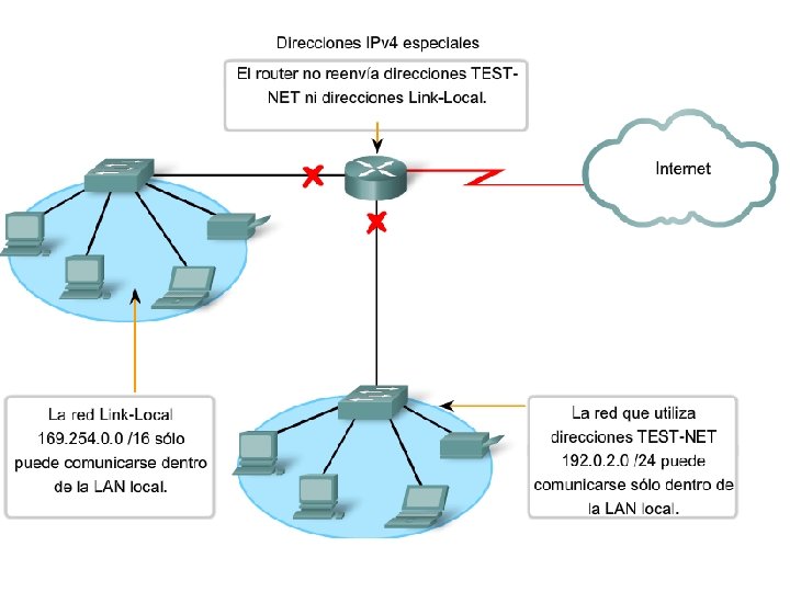 Loopback A pesar de que sólo se usa la dirección única 127. 0. 0. 1, se reservan las direcciones 127. 0. 0. 0 a 127. 255. Cualquier dirección dentro de este bloque producirá un loop back dentro del host local. Ni siquiera debe aparecer ninguna dirección en ninguna red dentro de este bloque. Direcciones de enlace local Las direcciones IPv 4 del bloque de direcciones de 169. 254. 0. 0 a 169. 254. 255 (169. 254. 0. 0 /16) son designadas como direcciones de enlace local. El sistema operativo puede asignar automáticamente estas direcciones al host local en entornos donde no se dispone de una configuración IP. Éstas pueden usarse en una pequeña red punto a punto o con un host que no podría obtener automáticamente una dirección de un servidor de Dynamic Host Configuration Protocol (Protocolo de configuración dinámica de host, DHCP). Direcciones TEST-NET Se establece el bloque de direcciones de 192. 0 a 192. 0. 2. 255 (192. 0 /24) para fines de enseñanza y aprendizaje. Estas direcciones pueden usarse en ejemplos de documentación y redes. A diferencia de las direcciones experimentales, los dispositivos de red aceptarán estas direcciones en su configuración.
