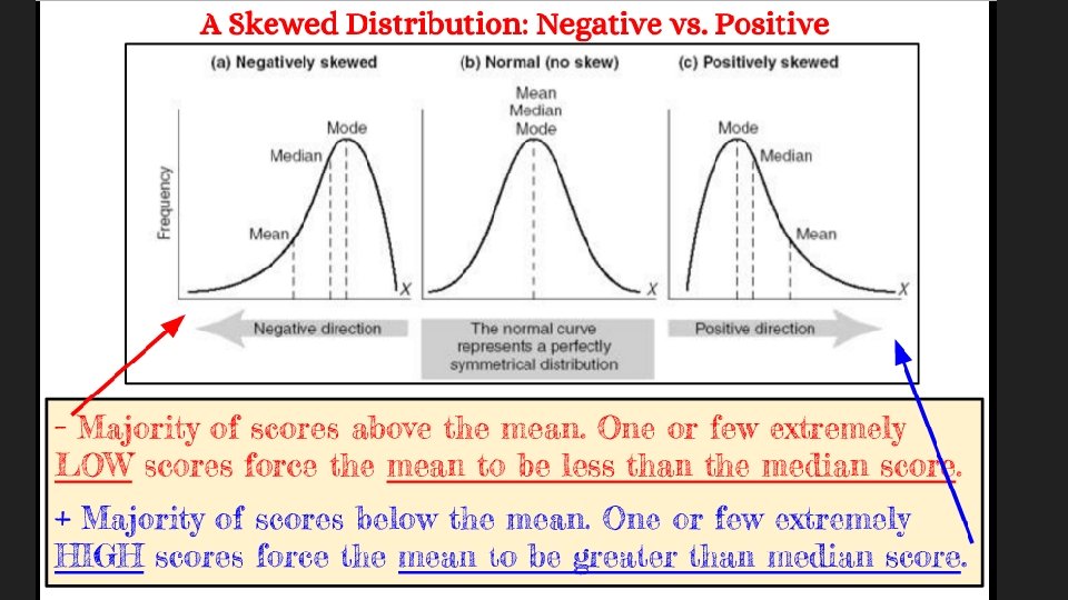 Measures of Central Tendency A Skewed Distribution – representation of scores that lack symmetry around their average value
