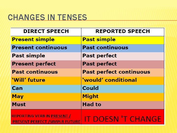 DEFINITION � Changes are made when direct speeches are transformed into indirect speeches. Tenses are not changed if: (a) the reporting verb is given in the present tense. E. g. Lily says, “It is the hottest month of the year. ” � (a) In reported form, it would be - Lily says that it is the hottest month of the year. This means that the reported statement is always true.