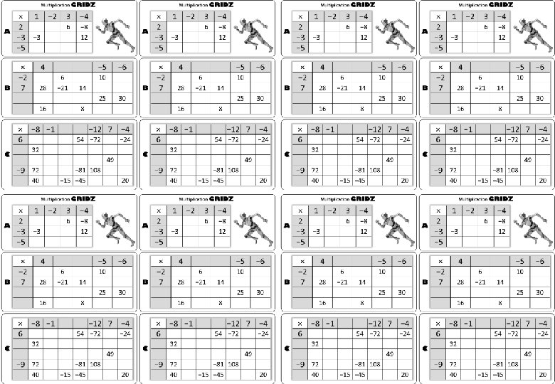 Directed Numbers – Multiplying & Dividing – Gridz Worksheets increase in difficulty and are in a variety of sizes. The Gridz can be split or kept as one worksheet.