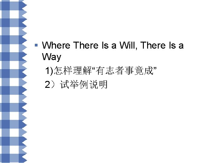 § (1) The proverb “Where there is a will, there is a way” has been generally accepted. (2) It tells us that as long as a person possesses a strong will he will certainly accomplish a task no matter how difficult it is. (3) The truth of it is deep and profound.