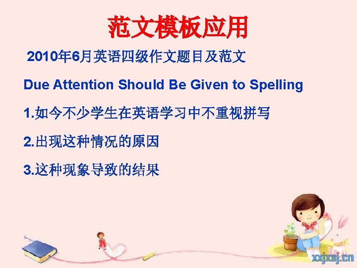 范文模板应用 Due Attention Should Be Given To Spelling Nowadays, students attach less importance to the spelling of words in the process of English study. This phenomenon greatly influences students’ writing and brings on worries among teachers.