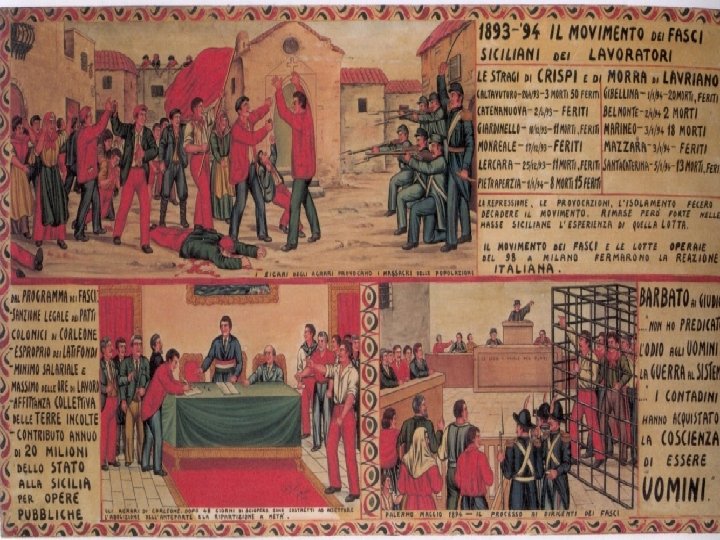 Dal discorso tenuto da GIOLITTI, Ministro dell’Interno, il 4 febbraio 1901, in cui si affronta il problema dell’atteggiamento dell’esecutivo nei confronti delle organizzazioni operaie. “Purtroppo persiste ancora nel governo e in molti dei suoi rappresentanti la tendenza a considerare come pericolose tutte le associazioni di lavoratori. Questa tendenza è effetto di poca conoscenza delle nuove correnti economiche e politiche da tempo si sono determinate nel nostro come in tutti gli altri paesi civili, e rivela che non si è ancora compreso che la organizzazione degli operai cammina di pari passo con il progresso della civiltà. (…) Ora (le) Camere di lavoro che cosa hanno in sé di illegittimo? Esse sono le rappresentanti dì interessi legittimi delle classi operaie: la loro funzione è di cercare il miglioramento di queste classi (…. ) e potrebbero, se bene adoperate dal governo, essere utilissime intermediarie fra capitale e. (…) Si dice che le Camere di lavoro, come vennero costituite, hanno preso atteggiamenti ostili allo Stato. Lavoro. Ma questa è una conseguenza inevitabile della condotta del governo! Colui che si vede sistematicamente perseguitato dallo Stato, come volete che ne sia l’amico? (…) Io (…) non temo mai le forze organizzate, temo assai più le forze inorganiche perché su dì quelle l’azione del governo si può esercitare legittimamente e utilmente, contro i moti inorganici non vi può essere che l’uso della forza”.