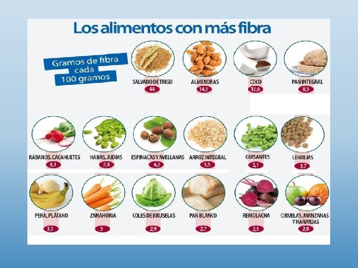 El ser humano no puede usar la celulosa como fuente de glucosa. Los jugos digestivos no poseen enzimas que hidrolicen enlaces glucosídicos 1 -4. Alimentos integrales: son los cereales que contienen la cáscara, es decir son abundantes en celulosa. Si es trigo tiene la cáscara del trigo.
