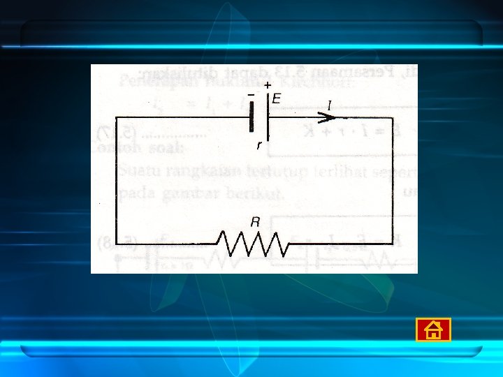 Keterangan : E = ggl sumber arus dalam volt I = kuat arus dalam A r = hambatan dalam sumber arus dalam ohm R = hambatan luar atau penghambat dalam ohm