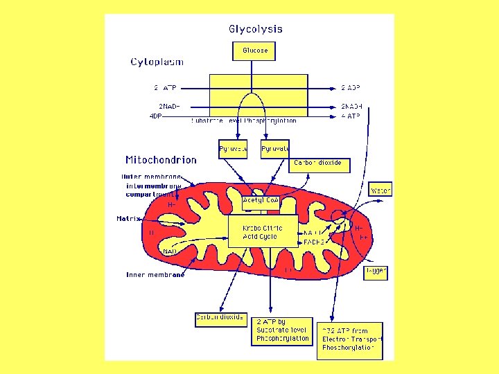 - balans glikolize glukoza + 2 ADP + 2 Pi + 2 NAD ----- 2 piruvata + 2 ATP + 2 NADH (na jedan molekul glukoze proizvode se 4 molekula ATP, ali se 2 troše za fosforilaciju fruktoze, pa je zato čist prinos cijelog procesa 2 ATP)