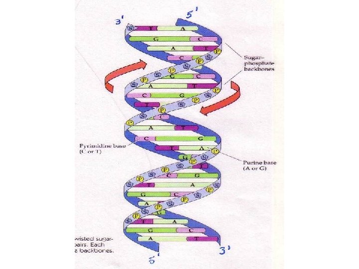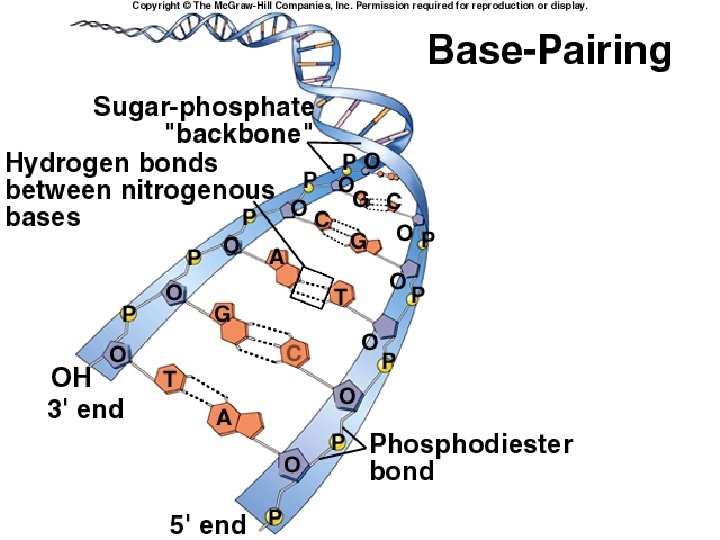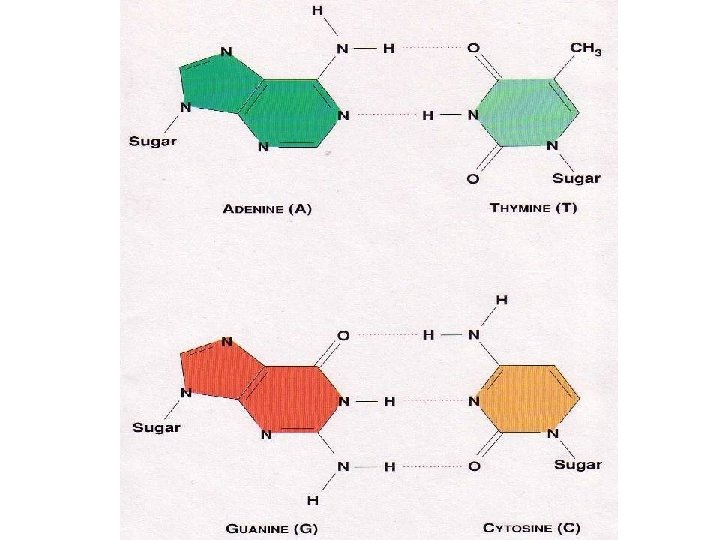 DNA bases pair via hydrogen bonds • Erwin Chargaff observed: • % adenine = % thymine • % guanine = % cytosine • Complementary bases pair: –A and T pair –C and G pair