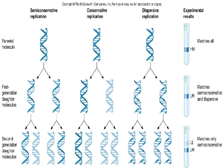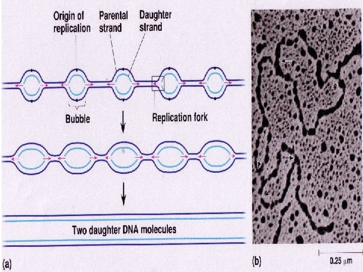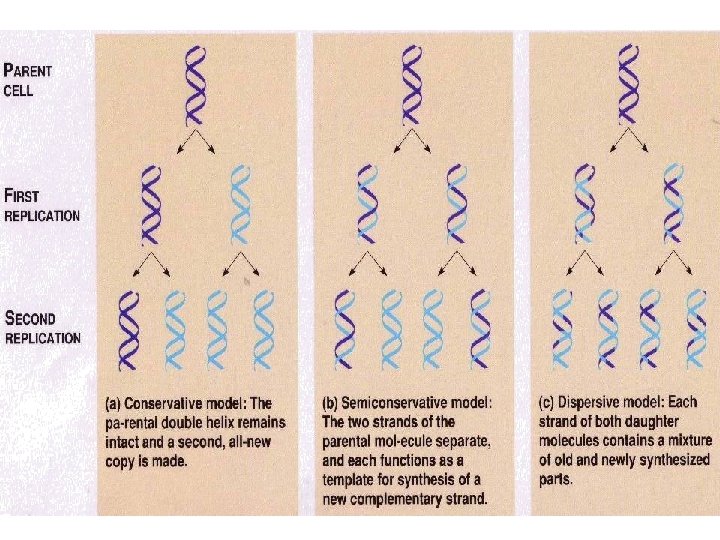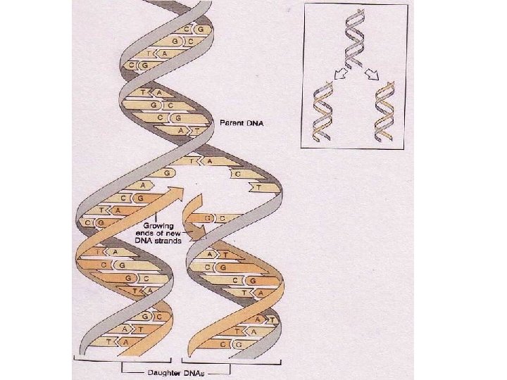 Replication as a process • Double-stranded DNA unwinds. The junction of the unwound molecules is a replication fork. A new strand is formed by pairing complementary bases with the old strand. Two molecules are made. Each has one new and one old DNA strand.