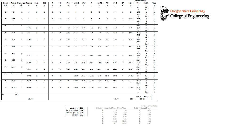 In-class Exercise No entities have 0 time in queue • Compute the average number in queue, and average time in queue through T = 14 (assume first-in-first-out).