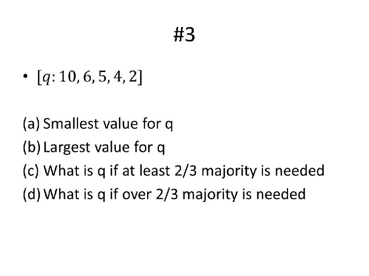 #5 • [49: 4 x, 2 x, x, x, x] (a) 49 is a simple majority (b) 49 is more than 2/3 majority (c) 49 is more than ¾ majority [49: 48, 24, 12] [49: 36, 18, 9, 9] [49: 32, 16, 8, 8]
