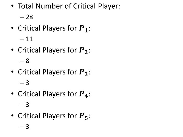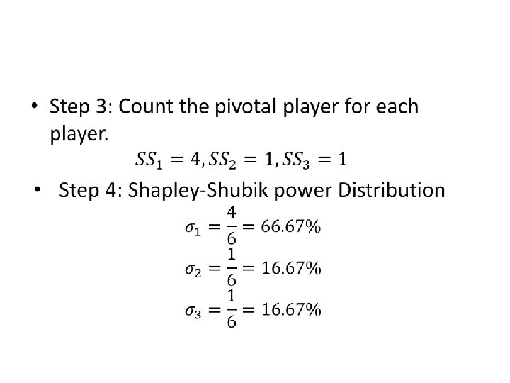 • Step 1: list the Sequential Coalitions • Step 2: find the pivotal players