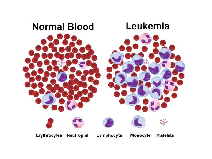 1. Disorders of the Blood b) Leukemia • a group of cancers which produce higher than normal number of WBCs in the blood • may be acute (rapid onset) or chronic (progress over a long period of time) • symptoms include fatigue, abnormal bruising, swollen lymph glands • can be treated with chemotherapy and radiation