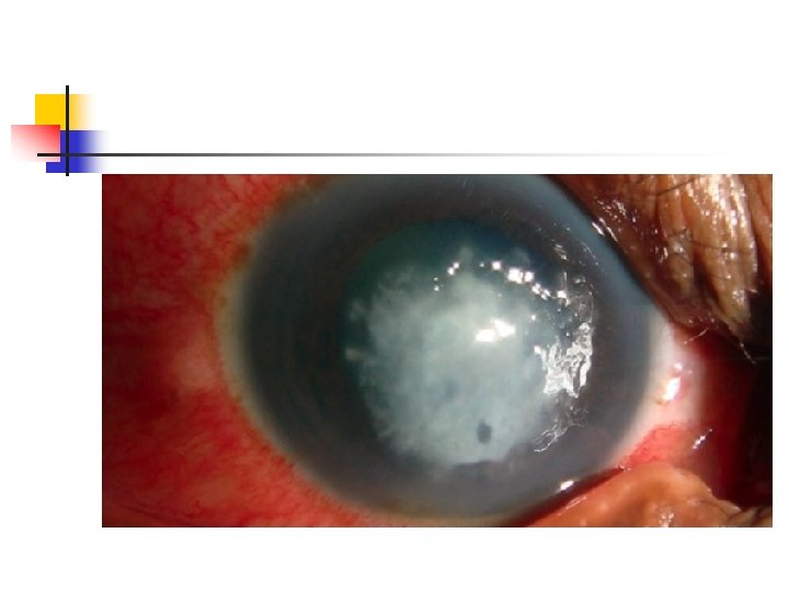 PREDISPOSING FACTORS n Ocular - Trauma - Contact lens - lids and adenexal infections - Topical medications n Ocular surface diseases - Dry eyes – Sjogrens syndrome, SJ synd. , Vit A def - Prolonged Corneal Exposure - Proptosis, Lagophthalmos , ectropion - Epi. Defect – Entropion , Trichiasis