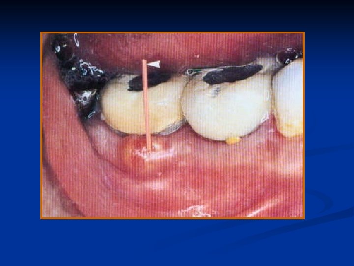 § manifested by swelling and mild pain. § Aperiodontalabscessisgenerallyassociatedwith vital rather than with pulp less teeth,