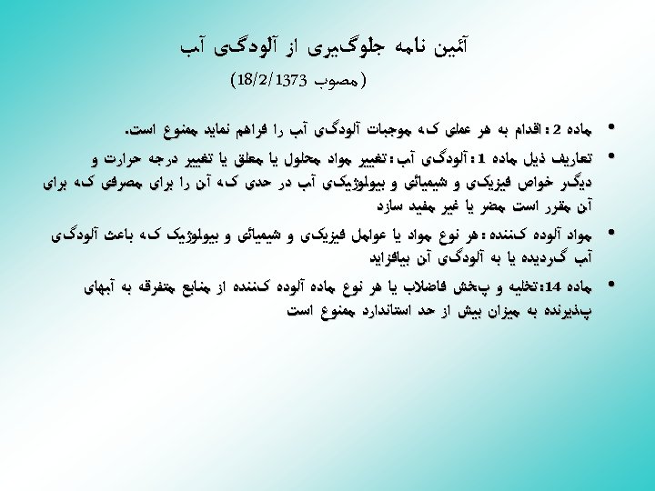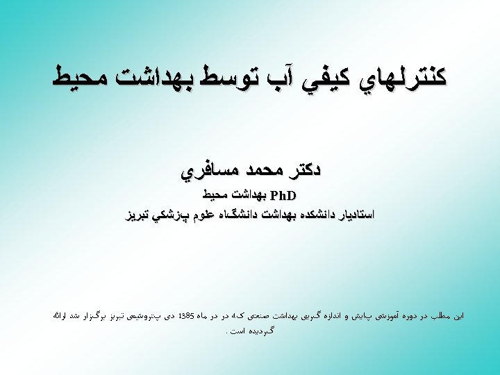 ﻭﺍﻛﻨﺸﻬﺎﻱ ﻛﻠﺮ ﺩﺭ آﺐ • Cl 2 + H 2 O HOCl + HCl • HOCl H+ + OCL • Ca(OCl)2 Ca 2+ + 2 OCl • Free available chlorine