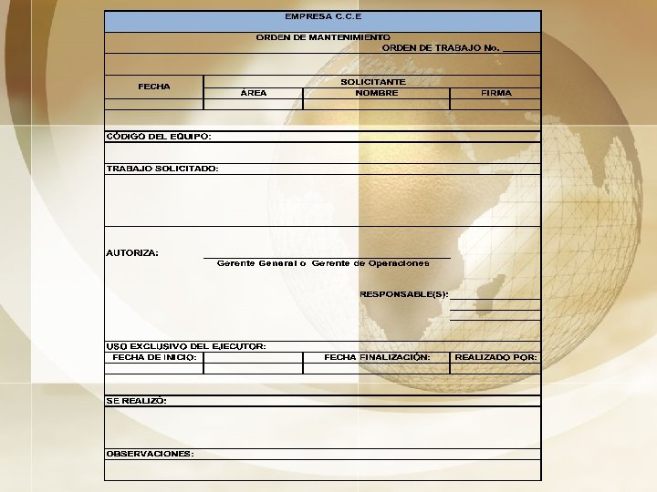 MANTENIMIENTO PLANIFICADO ANTES AHORA • Ausencia Planes de Mantenimiento. • Se elaboró: • Falta de Órdenes de Mantenimiento. Planes de Mantenimiento. • No se toman acciones de mejora ni de prevención. Ordenes de Mantenimiento. Análisis de Averías. Registro de Averías. BENEFICIO: Cero averías, aumentar disponibilidad y eficiencia de equipos.