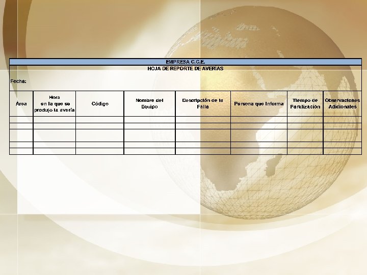 üCapacitación del personal sobre el uso del equipo, identificación de problemas presentes. üDetalles son los que mejoran los procesos. üCapacitación al personal , conceptos de la calidad total, para que puedan entender y adaptarse al proceso de mejora contínua.