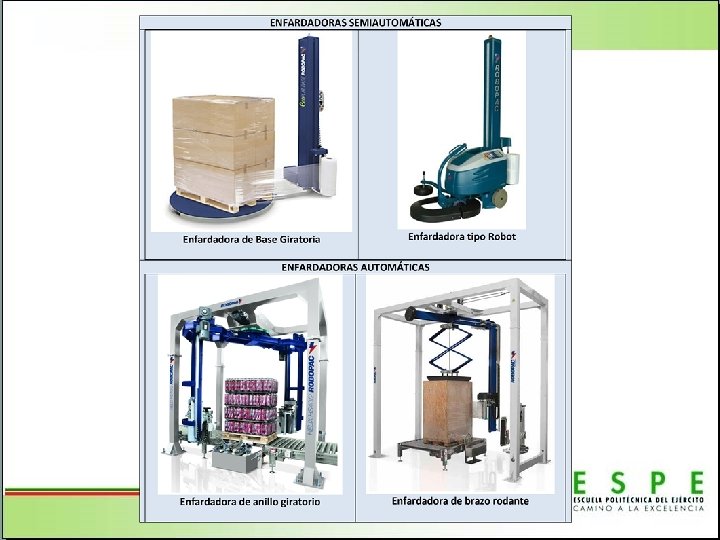 JUSTIFICACION E IMPORTANCIA • Disminuir los tiempos de proceso y aumentar el volumen de producción • Cubrir las necesidades actuales de enfardado mediante el diseño y construcción de un prototipo de máquina enfardadora, la cual brinde un mayor ahorro en el consumo de película estirable (20%) reduciendo el desperdicio y por ende mejoras al medio ambiente. • Mejor presencia del acabado de la carga sobre palé • Por estas razones, una máquina enfardadora es una buena inversión para ENKADOR S. A. y cualquier otra empresa por optimización de la producción, acabado, mejora de la salud de los operarios y sobretodo ahorro de dinero.