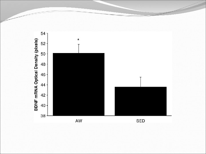 Running as a Reinforcer Rodents that run have increased DA release in nucleus accumbens (natural and drug reward). Drug addiction prone rodent strains ( Lewis, C 57 BL/6) develop high running activity, (10 km/day v. 2 km/day) This study: SD rats, 1. 2 -2. 8 Km over three weeks (four week peak? ) No absolute correlation. Rodents can be trained to lever press for access to running wheels (Self administration). Long access to wheel running- shift from low to high activity. Not seen with shorter access (as in drug selfadministration)