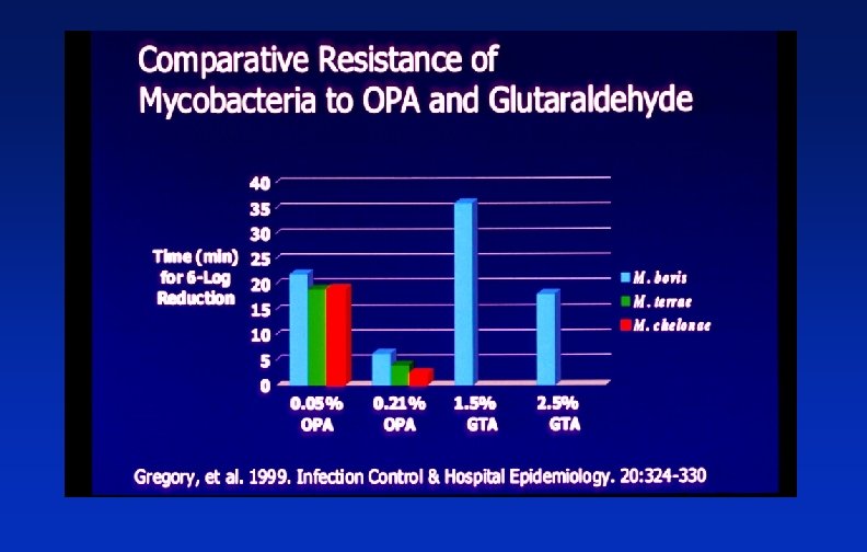Comparison of Glutaraldehyde and OPA >2. 0% Glutaraldehyde l HLD: 45 min at 25 o. C l Needs activator l 14 day use life l 2 year shelf life l ACGIH ceiling limit, 0. 05 ppm l Strong odor l MEC, 1. 5% l Cost - $10/gallon 0. 55% Orthophthalaldehyde l HLD: 12 min at 20 o. C l No activator needed l 14 day use life l 2 year shelf life l No ACGIH or OSHA limit l Weak odor l MEC, 0. 3% l Cost - $30/gallon Copyright © 2004 WA Rutala