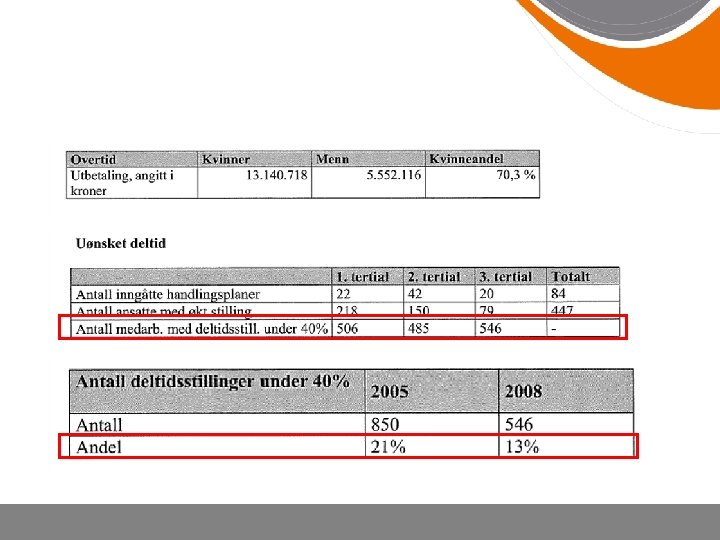 Kjønnsfordeling i forhold til: • • • Lønn Antall ansatte Arbeidstid – heltid/deltid Foreldrefravær Personalpolitiske satsinger