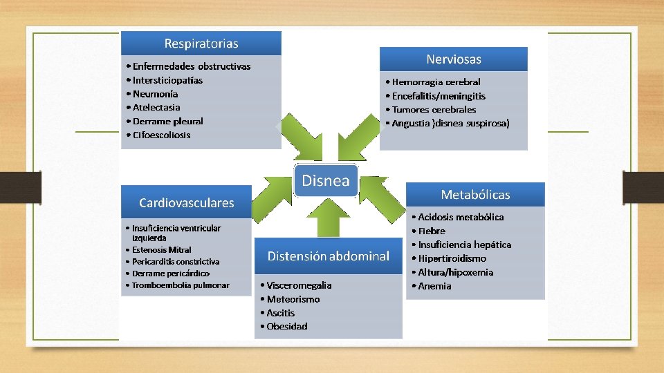 Definición • Del griego: dis + pnoia: “DÍFICIL RESPIRACIÓN” • Sensación subjetiva de dificultad respiratoria. “falta de aire”, “me ahogo”. • No confundir con signos Hiperpnea: aumento de frecuencia y profundidad de la respiración Taquipnea o polipnea: Ventilación rápida. Batipnea: Respiración profunda.