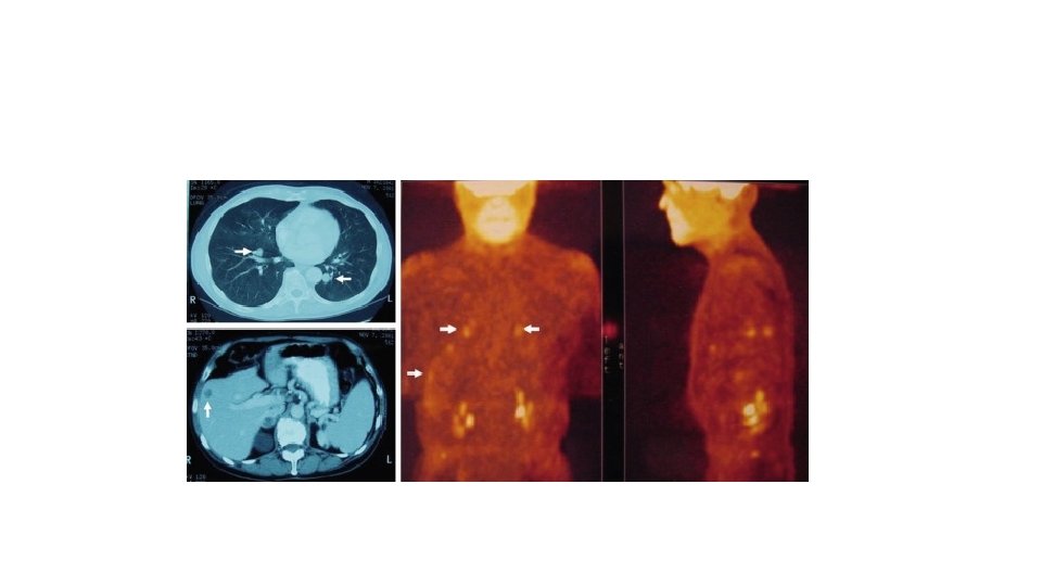 Imaging studies Primary tumor (no clinical evidence of other involvement) Physical examination Chest radiography Liver function tests Lymphoscintigraphy to detect sites of sentinel nodes (if primary tumor is 1 m or more thick) Local and regional disease (in-transit lesions or nodal involvement) Physical examination Liver function tests CT scans of chest and abdomen (to examine lungs and liver) of pelvis if tumor involves lower extremities of neck if tumor involves the head and neck Lymphoscintigraphy to detect sites of sentinel nodes Additional scans as indicated by clinical signs or symptoms Distant organ metastases Physical examination Liver function tests and serum lactate dehydrogenase level CT scans as indicated above MRI scans if required to detect extent of soft tissue invasion PET scans to detect extent of tumor involvement of vital organs (lung, liver, brain)