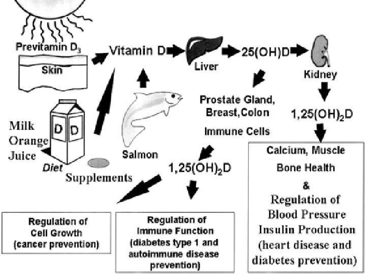 Laboratory & Radiological Findings The underlying defect leading to these changes is the decrease in the production of 1, 25(OH)2 D 3 which is due to diminished availability of the major circulating metabolites of vit D 25 OHD 3. The decreased 1, 25(OH)2 D 3 results in decreased intestinal calcium absorption, decreased bone resorption, hypocalcaemia, increased PTH secretion and hypophosphatemia.