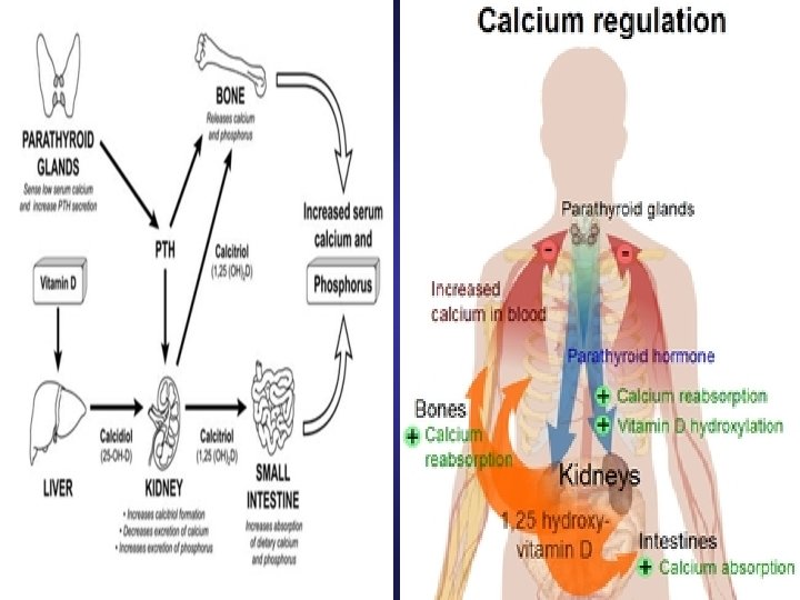 Disorders of the Parathyroid Glands The PTH acts directly on the bones and kidneys and indirectly on the intestine through its effect on the synthesis of 1, 25 (OH)2 D 3. Its production is regulated by the concentration of serum ionized calcium. Lowering of the serum calcium levels will induce an increased rate of parathyroid hormone secretion