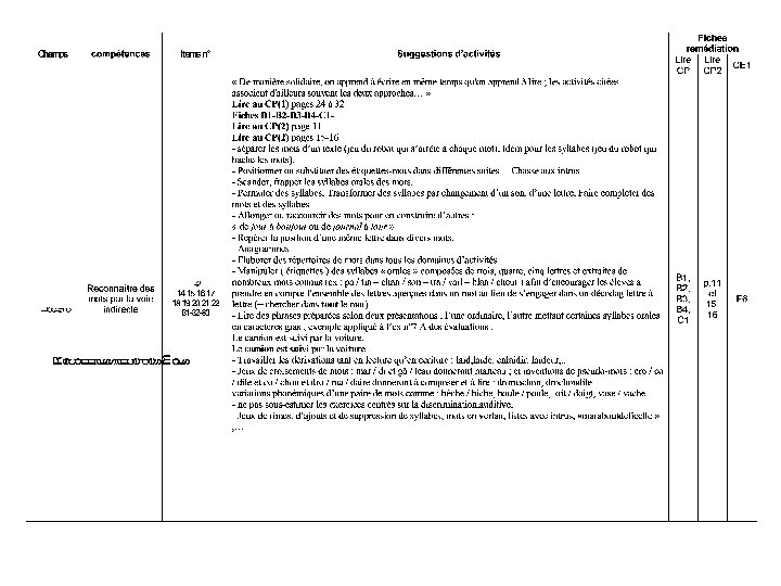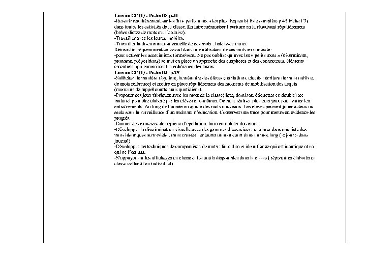 Profil C Élèves pour lesquels la compréhension est limitée et qui ont bien ou très bien réussi les items d’identification des mots, de dictée et de copie : 1. Compréhension faible : texte lu par le maître ou de manière autonome 2. Compréhension très faible en lecture autonome seulement 3. Compréhension assez correcte dans les limites des épreuves (textes courts et relatifs à des univers familiers) Anticiper les difficultés en alternant moments individuels de soutien et activités collectives aménagées.