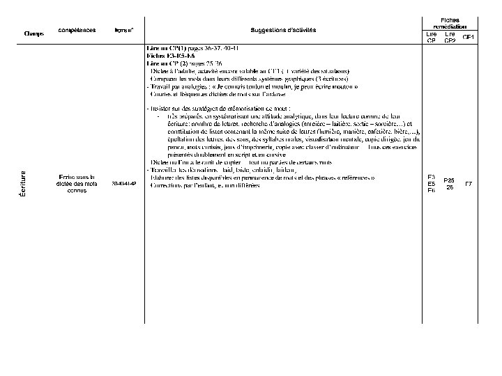 Ecriture • Ecrire sous la dictée des mots connus (maison, treize, tigre, pour) • Copier sans erreur (arbre, pomme, fleur, quatre, 6, 23)