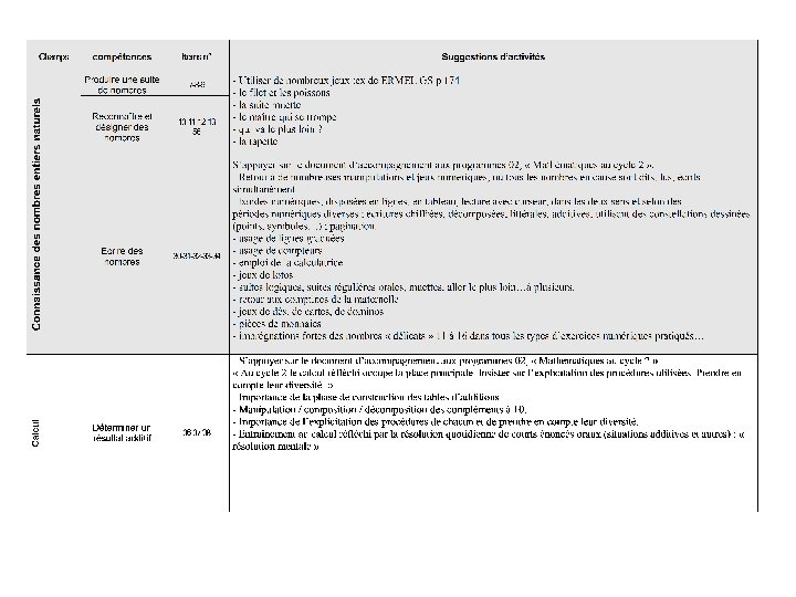 Connaissance des nombres entiers naturels • Produire une suite de nombres • Reconnaître et désigner des nombres • Ecrire des nombres (16; 18; 35; 67; 79)