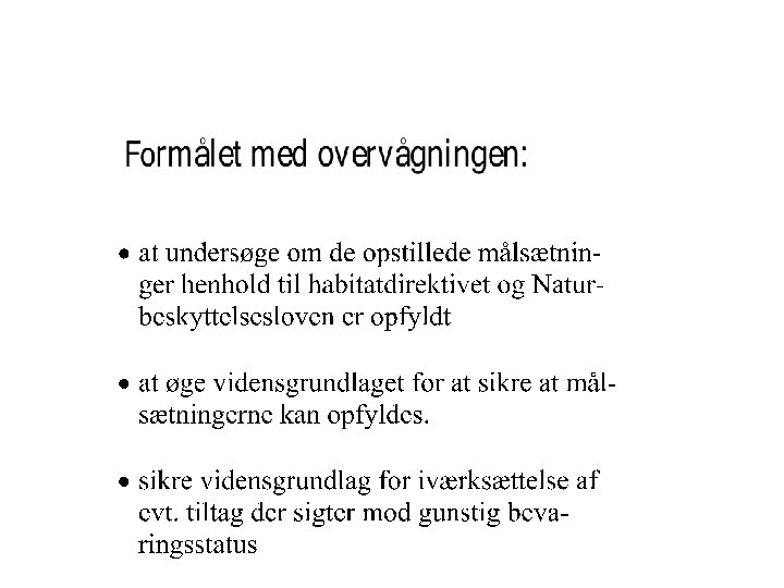 Bevaringsmålsætninger - hvilke typer af oplysninger som skal indsamles. - at foreslå hvilke kriterier som skal være opfyldt for at bevaringsstatus kan siges at være gunstig for en naturtype eller art.