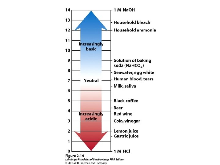 The p. H scale • • • 0 < 7 < 14 Less than 7 is an acid (acidic) 7 is neutral Greater than 7 is a base (alkali, caustic, basic) Most of biology involves p. H values close to neutral