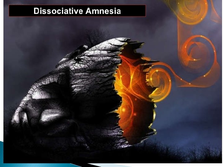 Dagnosis and DSM-IV Criteria �At least one episode of inability to recall important personal information, usually involving a traumatic or stressful event �The amnesia cannot be explained by ordinary forgefulness �Symptoms cause significant distress or impairment in daily functioning and cannot be explained by another disorder, including traumatic brain injury, medical condition, or substance use.