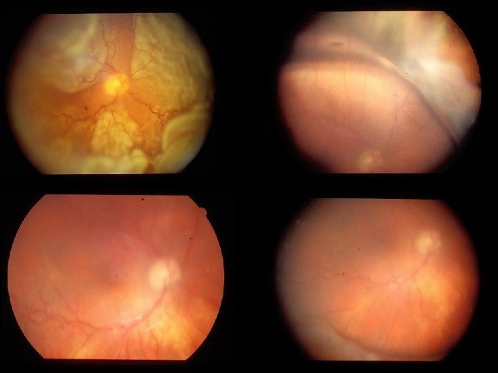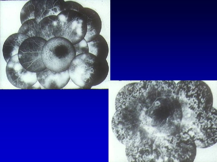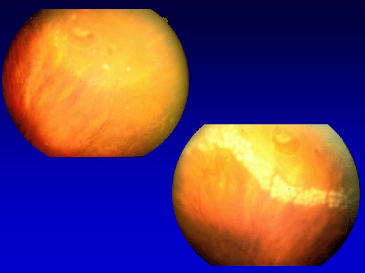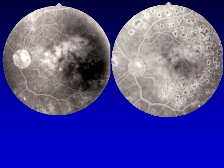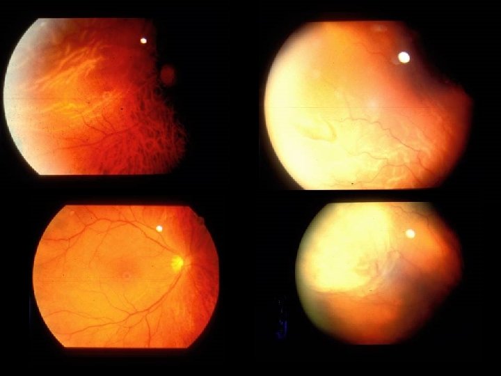 TRATTAMENTO PARACHIRURGICO FOCALE: microaneurismi con diffusione tra 400 -3000 micron dalla fovea; lesioni tra 300 -500 micron dalla fovea se visus <= 5/10 A GRIGLIA: edema maculare PANFOTOCOAGULAZIONE: aree ischemiche > 10Ø papillari CRIOPESSIA TRANSCONGIUNTIVALE DELLA RETINA PERIFERICA: opacità del cristallino, rubeosis iridis, glaucoma neovascolare con residuo visivo