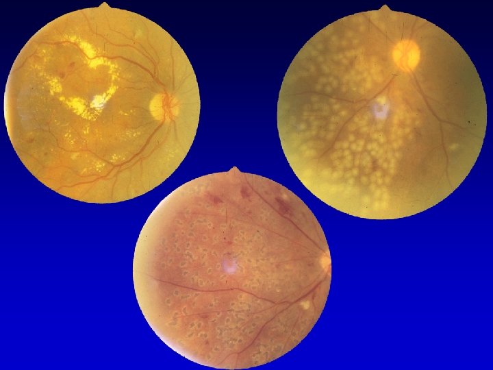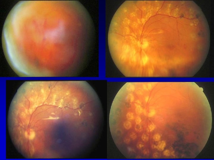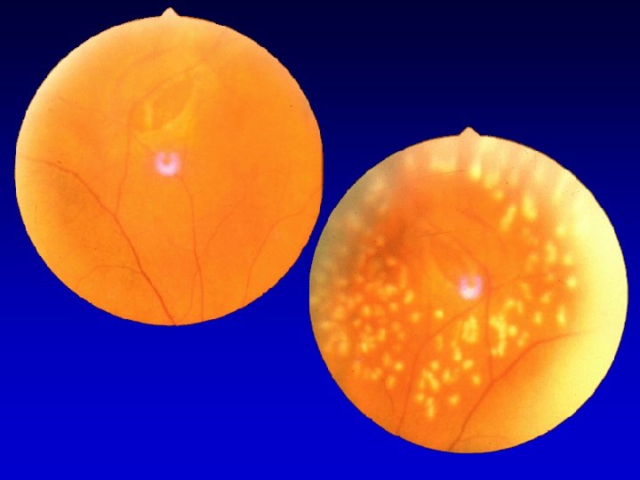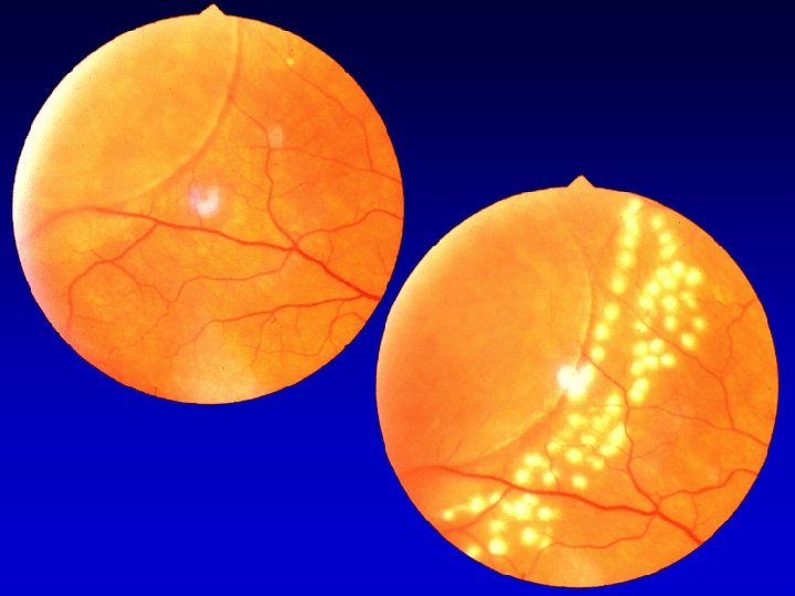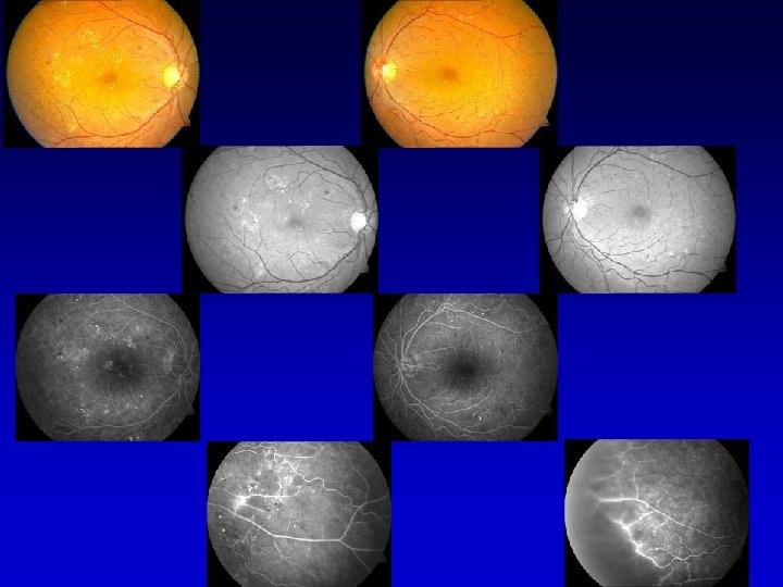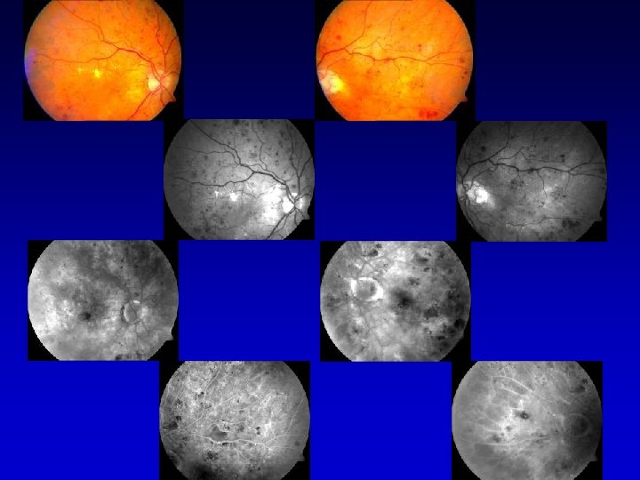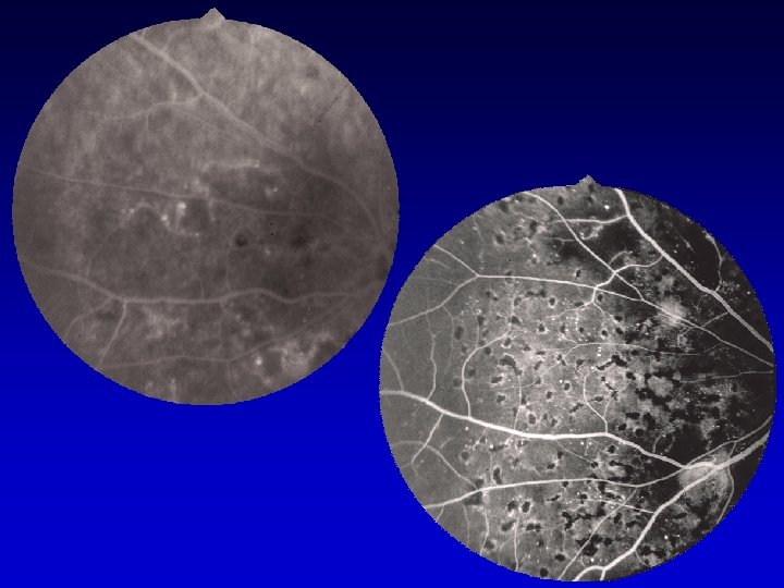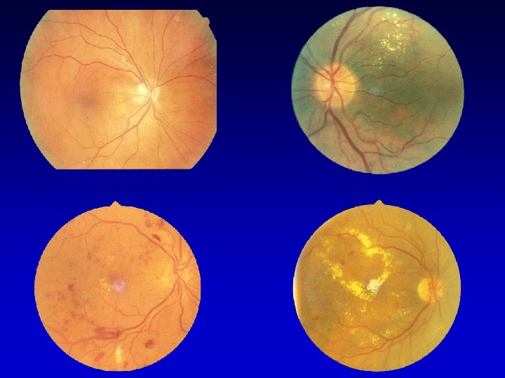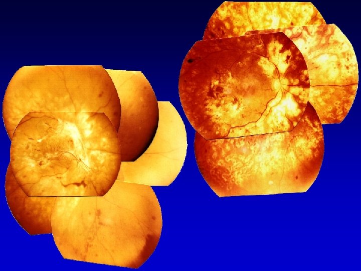 Classificazione delle alterazione retiniche nel diabete (Scuderi G. 1960) Forme pure Vasculopatia lieve Microaneurismi e emorragie puntiformi Retinite puntata A tipo prevalentemente emorragico A tipo prevalentemente degenerativo Vasculopatia marcata Gravissime emorragie retiniche e preretiniche con serie lesioni vasali specie venose Vasculopatia grave Invasione emorragica del vitreo Trombosi venosa diabetica Forme spurie od ibride Retinopatia diabetica-arteriosclerotica Retinopatia diabetica nefritica (iperazotemica-albuminurica gravidica) Retinopatia proliferante