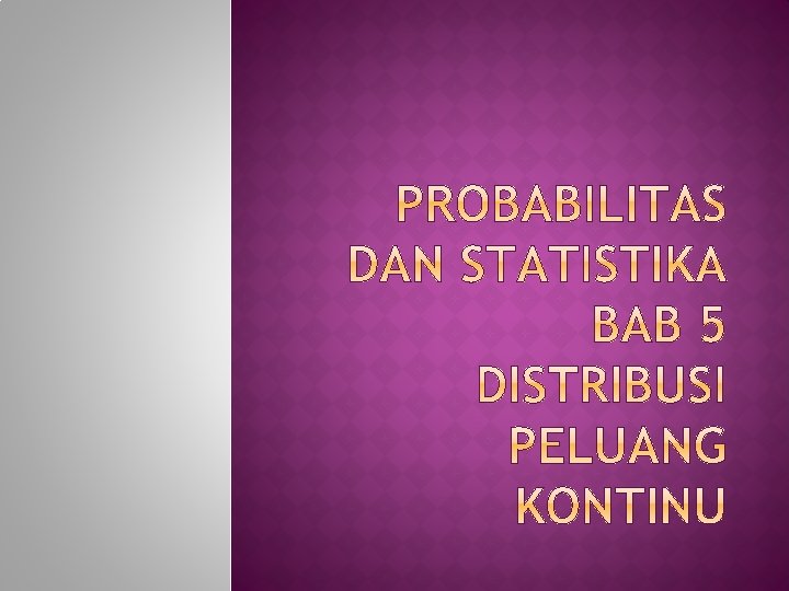 Distribusi Normal Luas di Bawah Kurva Normal Hampiran Normal terhadap Binomial Distribusi Gamma dan Eksponensial Distribusi Khi-Kuadrat Distribusi Weibull