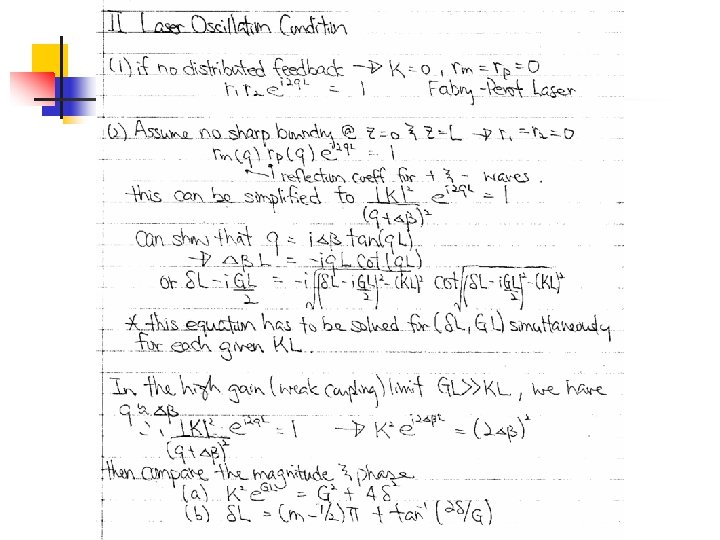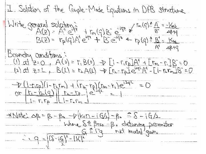 Gain-Coupled DFB Laser n n Complex : plug-in coupled mode equations with: