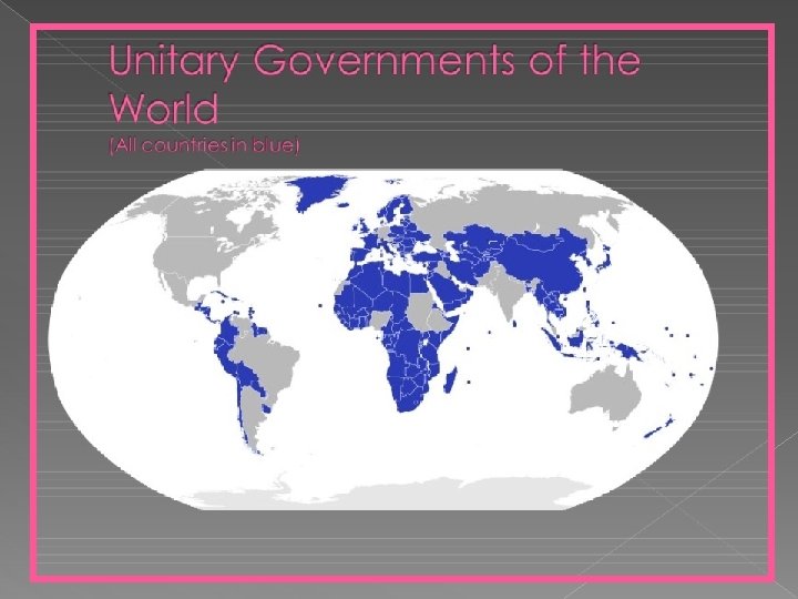 Unitary �A system in which power is held by one central authority � All power is given to one branch of government � Examples › United Kingdom (U. K. ) › Sweden › Spain