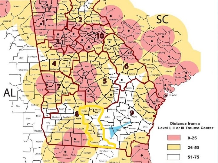 Clinical Care: Access to and Quality of Care Problems • Uninsured • Primary care physicians • • Uninsured 38% 36% 33% 25% 26% 24% 25% 22% 23% Georgia Avg. 22% 18% EC TU IR Doctor: Patient ratio LN BO CO BH BI TI LW Pop. per primary care physician Golden Hour Potential Solutions 25% 28% 8800 6800 8000 6443 5296 4800 2800 3370 1604 1917 3205 2238 1925 1010 Georgia Avg. 1611 EC TU IR LN BO CO BH BI TI LW