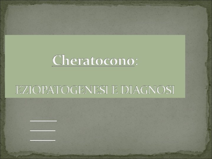 DISTROFIA ECTASICA DELLA CORNEA DI NATURA GENETICA ASSAI COMPLESSA IN CUI GIOCANO UN RUOLO ATTIVO FATTORI ESTRINSECI INCIDENZA STIMATA DI UN CASO SU 2000 ABITANTI (50 -230 SU 100000 ABITANTI)