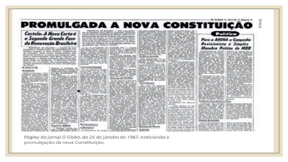 1964 -1985 ◦ O movimento que removeu Jango do poder era popular e foi apoiado pela opinião publica , já o regime que se seguiu não. ◦ Entre os civis se acreditava em uma intervenção militar que afastasse o presidente alinhado ao socialismo para depois retornar as eleições. ◦ Castelo Branco deveria eliminar os elementos associados ao socialismo do país e depois encaminha-lo para os civis. ◦ O fato do governo ser oriundo de um golpe constrangia os militares, eles queriam dar legitimidade ao governo e