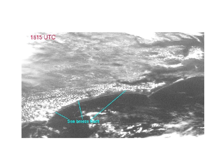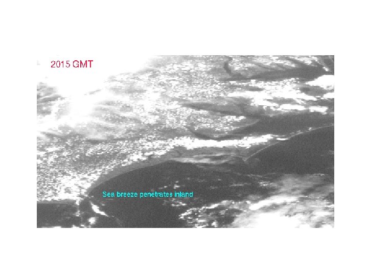 Sea Breeze Facts • Found over coastal regions during the day • Best developed in late spring and summer when sun is strongest and temperature contrasts largest. • Can cool the coast by 5 -15 F, sometimes more. • Tends to suppress clouds over water but enhances clouds them over land. • Starts at the coast and extends landward and seaward, 20 -50 km or more