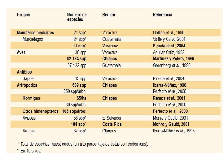 Shade coffee plantations as refugees for threatened fauna and flora from deforestation. Provide important environmental services.
